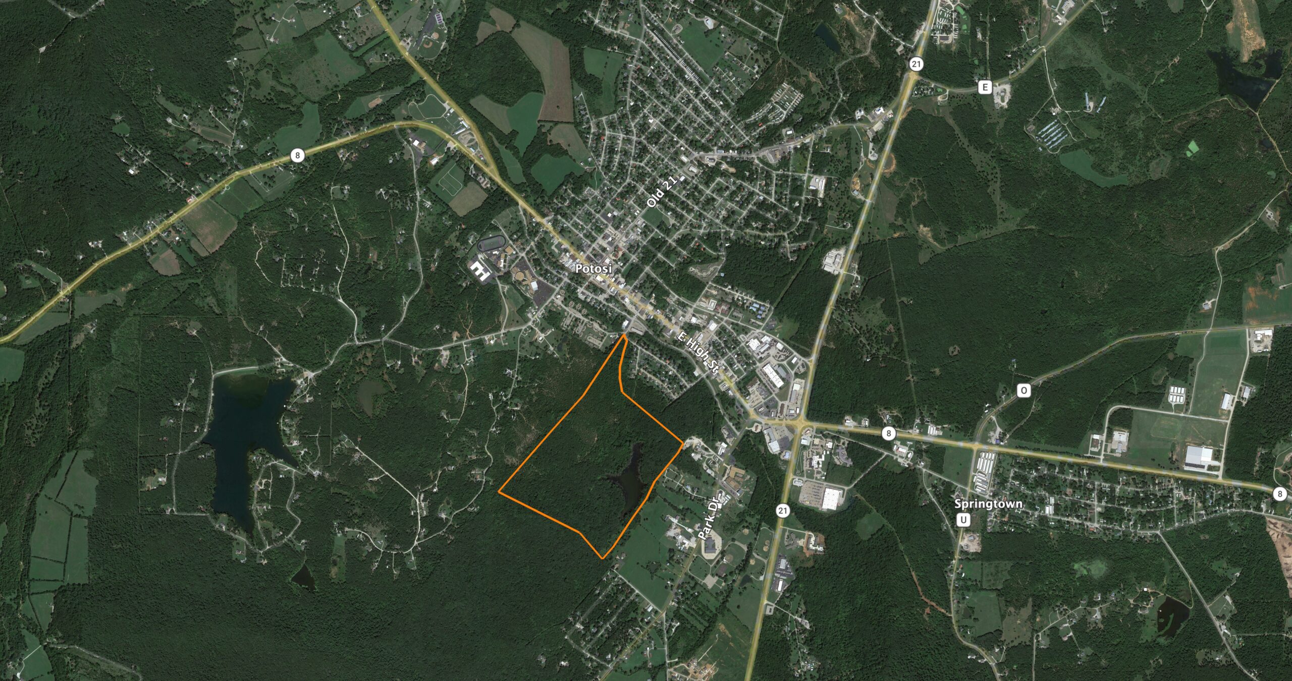 Fantastic Development Opportunity in the Heart of Potosi, Missouri Featuring a 12 Acre Lake