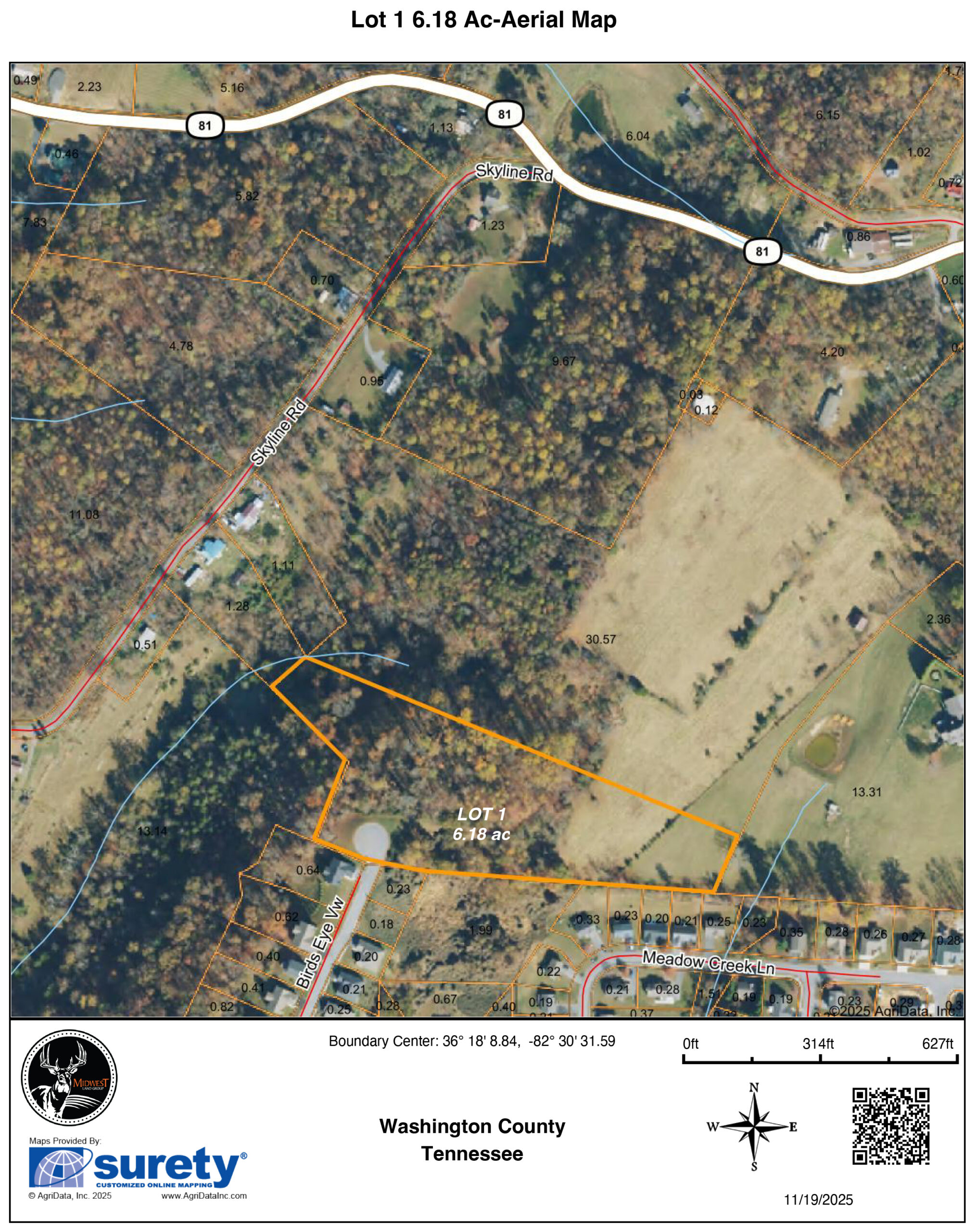- Lot 1: 6.18 acres