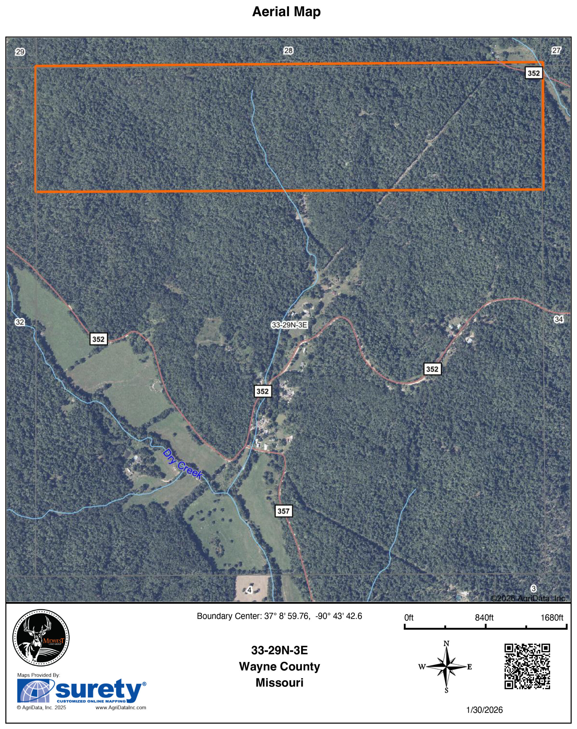 This 160 +/- acres in Wayne County, Missouri, is the perfect recreational setup. The property is located just a few miles east of Clearwater Lake. Access to the property is located off a well-maintained county road. The tract features mature hardwood timber with a rolling topography, which consists of several nice ridges and valleys. There is an interior trail system that makes navigation of the property a breeze. The area is known for great deer and turkey hunting. Electric is already established, laying the groundwork for future improvements. If having your own private acreage isn't enough, you can expand your recreational capabilities on thousands of acres of Mark Twain National Forest and take advantage of Clear Water Lake for fantastic fishing and boating opportunities. Don't miss out on this one! Give Jason Stokes a call today for your own private tour.Property Features
