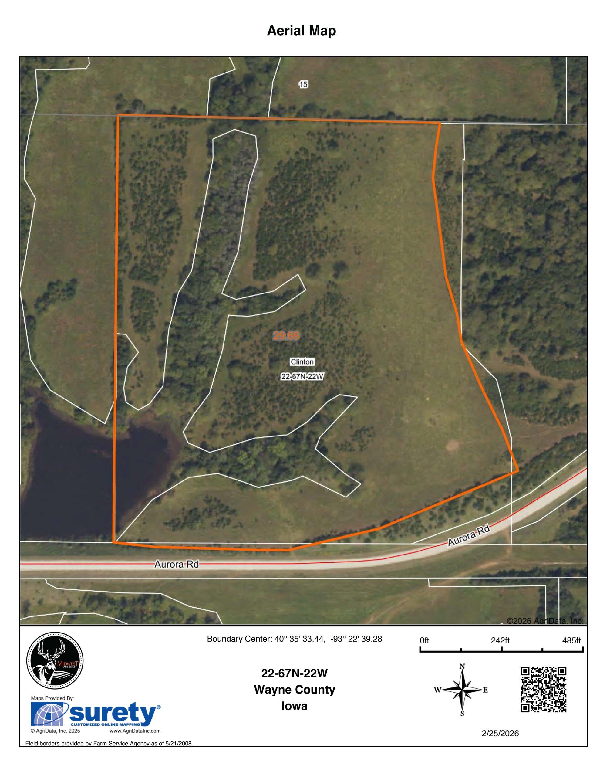 Located in southern Wayne County, Iowa, this 30 +/- acre property offers an excellent opportunity for buyers looking for a manageable tract that combines recreational appeal with a potential rural building site. The farm provides a quiet country setting with a mix of open grassland, scattered cedar cover, and natural terrain that creates both privacy and wildlife habitat.One of the highlights of the property is a shared pond totaling approximately 3 acres, with roughly 1 acre located on this farm. The pond adds both character to the landscape and a reliable water source that helps attract deer, turkey, and other wildlife throughout the year. The property’s layout offers a good balance of open ground and pockets of cover, creating natural travel corridors and bedding areas that support consistent deer and turkey activity. Whether you're looking for a smaller hunting property, a weekend getaway, or a place to establish a rural home or cabin, the farm offers a variety of potential uses.
