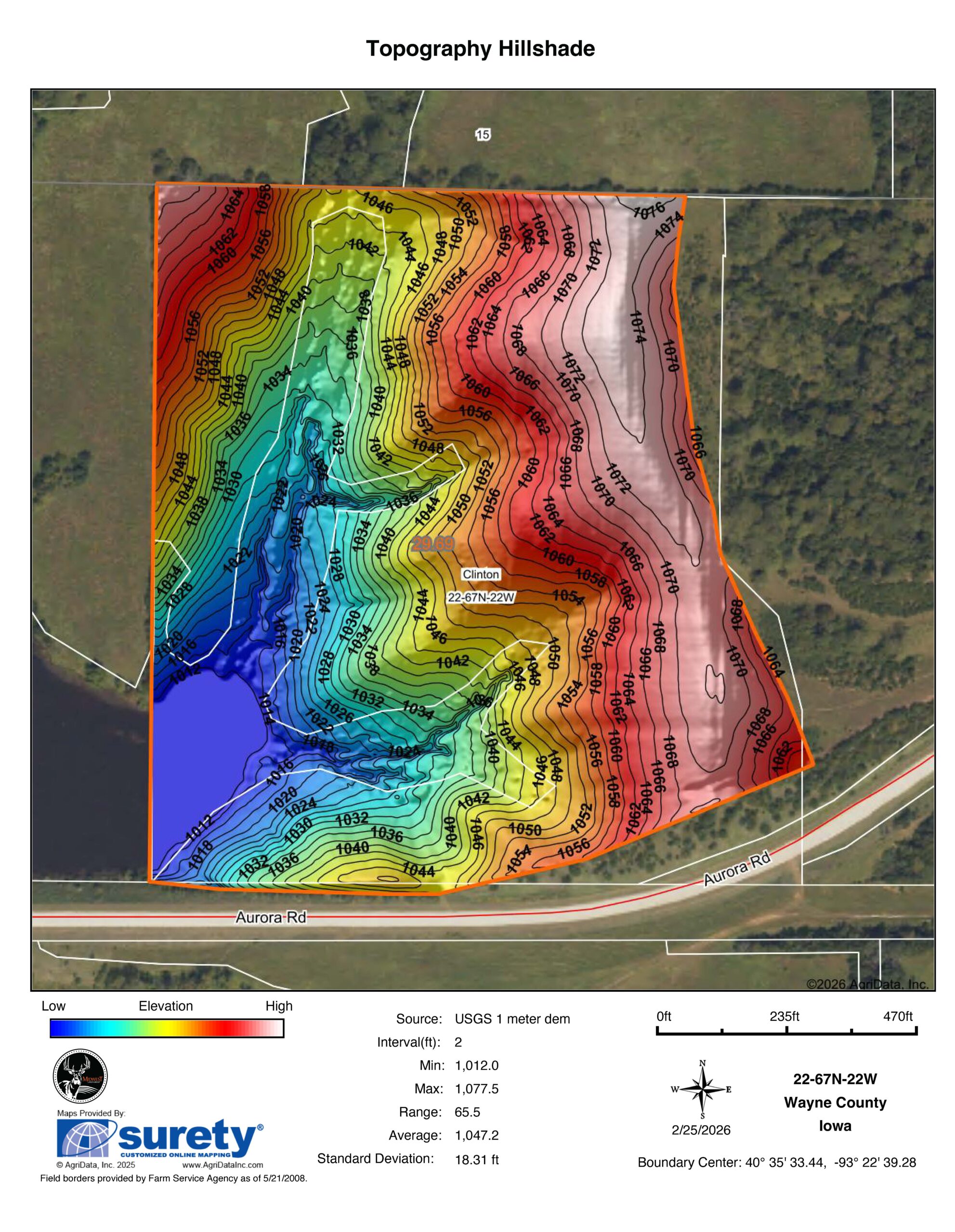 Adding to the recreational appeal, the property is located just one-half mile from Medicine Creek Wildlife Area, providing convenient access to additional public land for hunting, fishing, and outdoor recreation. The farm is located approximately 80 miles from Des Moines, 8 miles from Allerton, and 13 miles from Corydon, making it an easy drive for weekend trips or full-time country living.