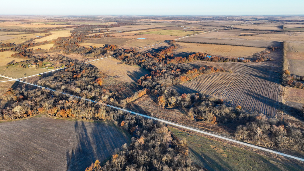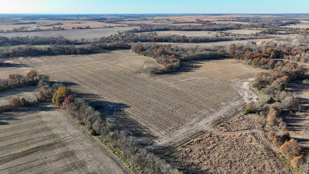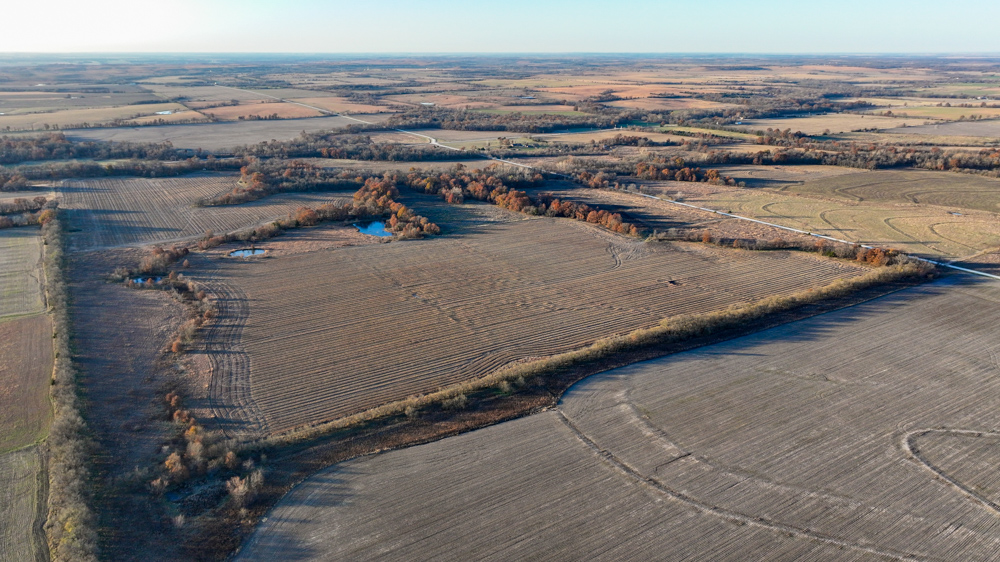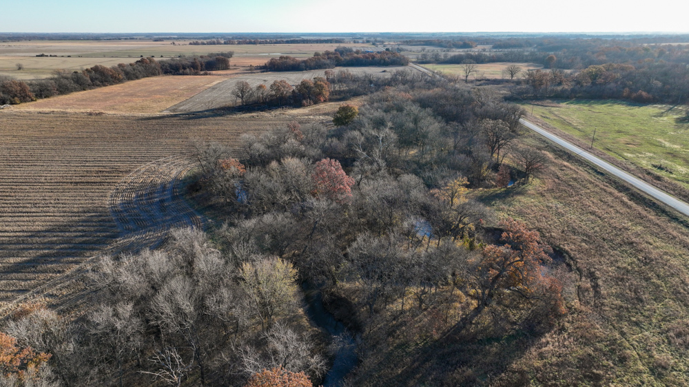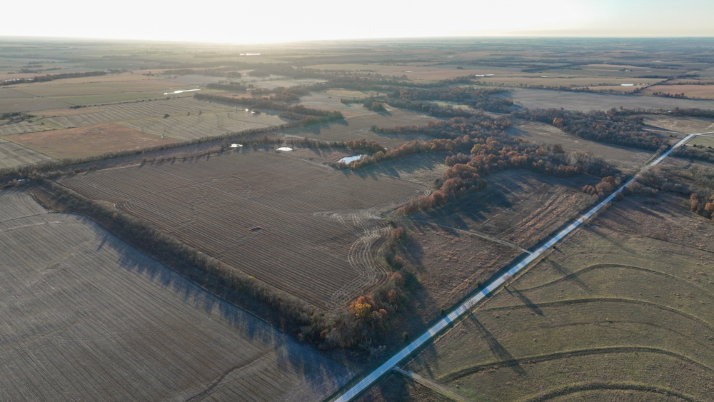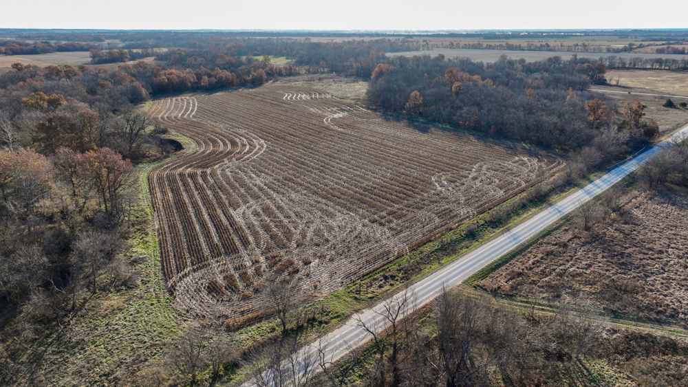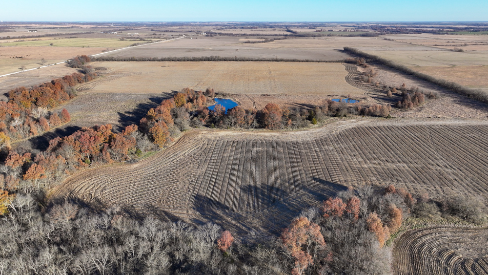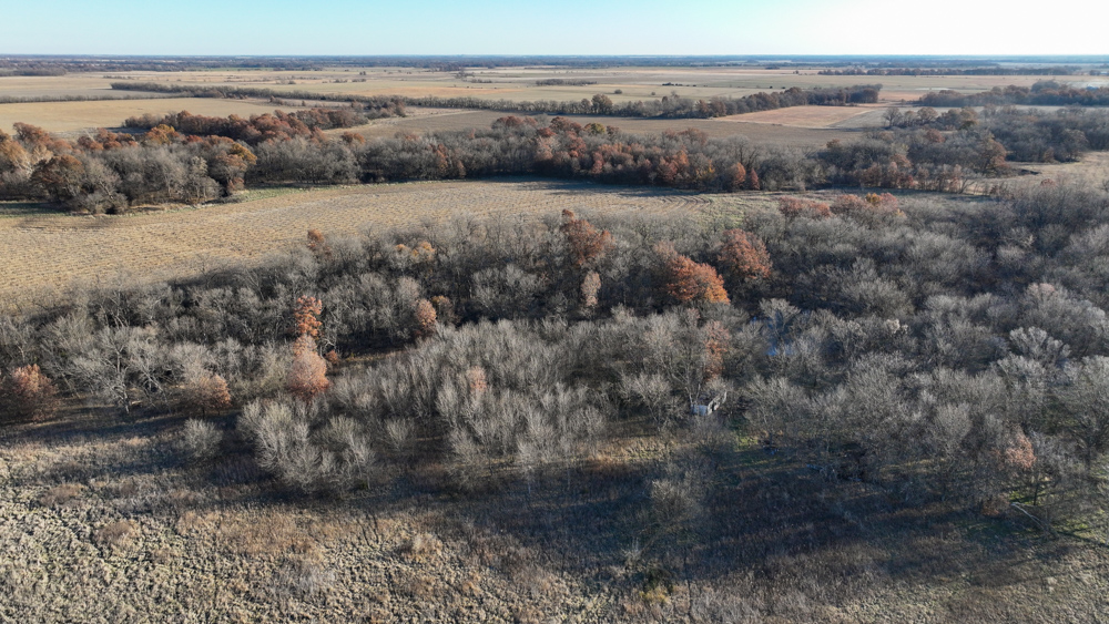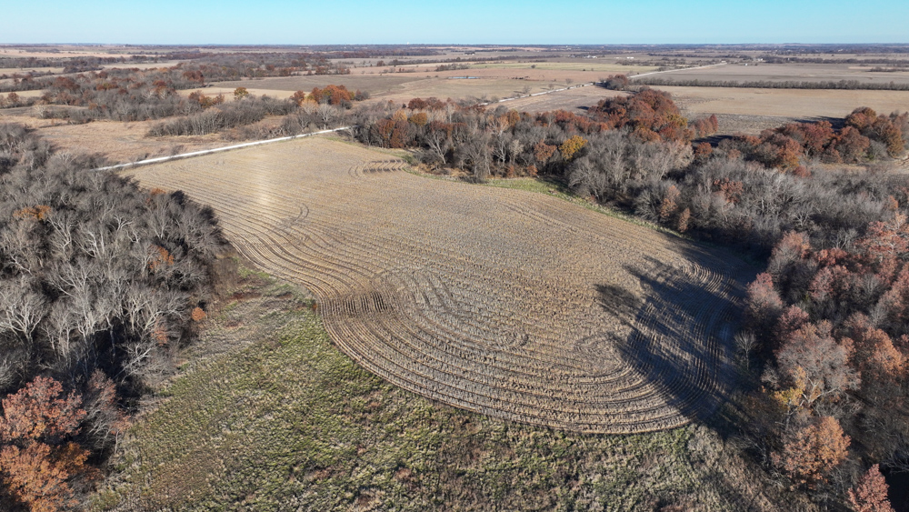 This 237 +/- acre property is located just south of Yates Center in Woodson County, Kansas, offering a rare combination of productive farmland, diverse wildlife habitat, and exceptional recreational opportunities. The property includes 117 +/- cropland acres currently in production, made up primarily of highly productive Class II and III Woodson and Kenoma silt loam soils. The cropland is well-maintained with terraces, waterways, and clean field edges, and is under a year-to-year oral cash rent lease, providing immediate income potential.