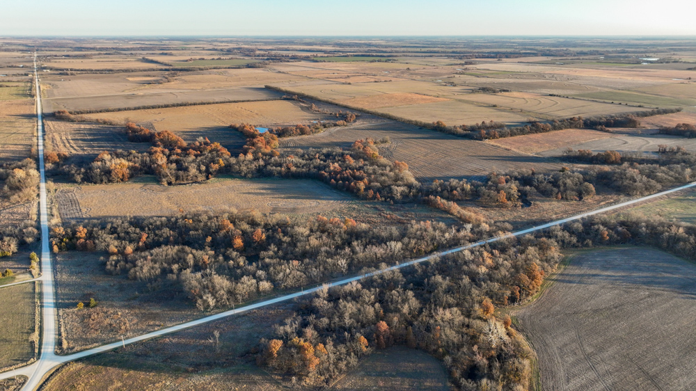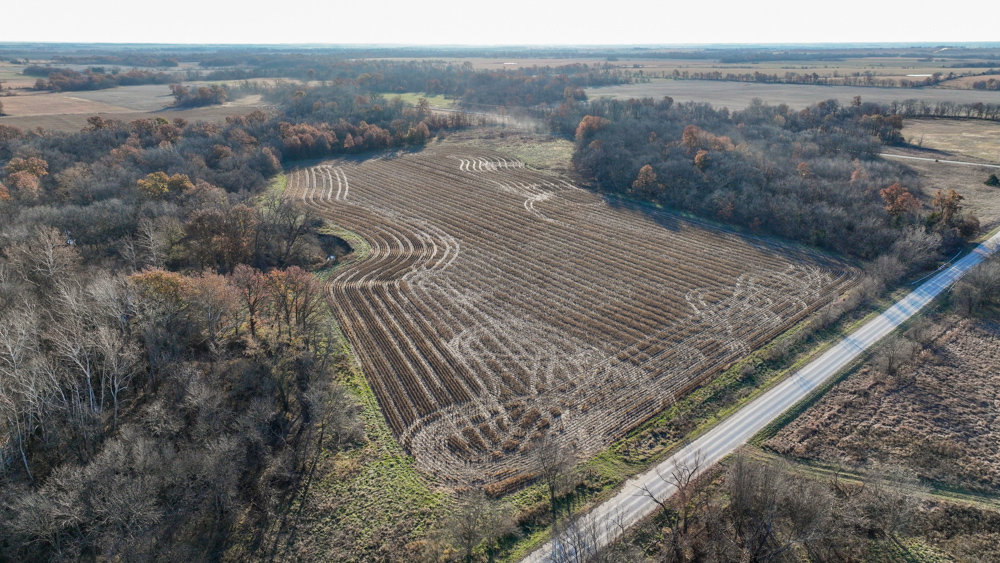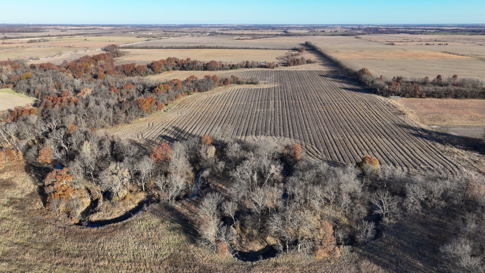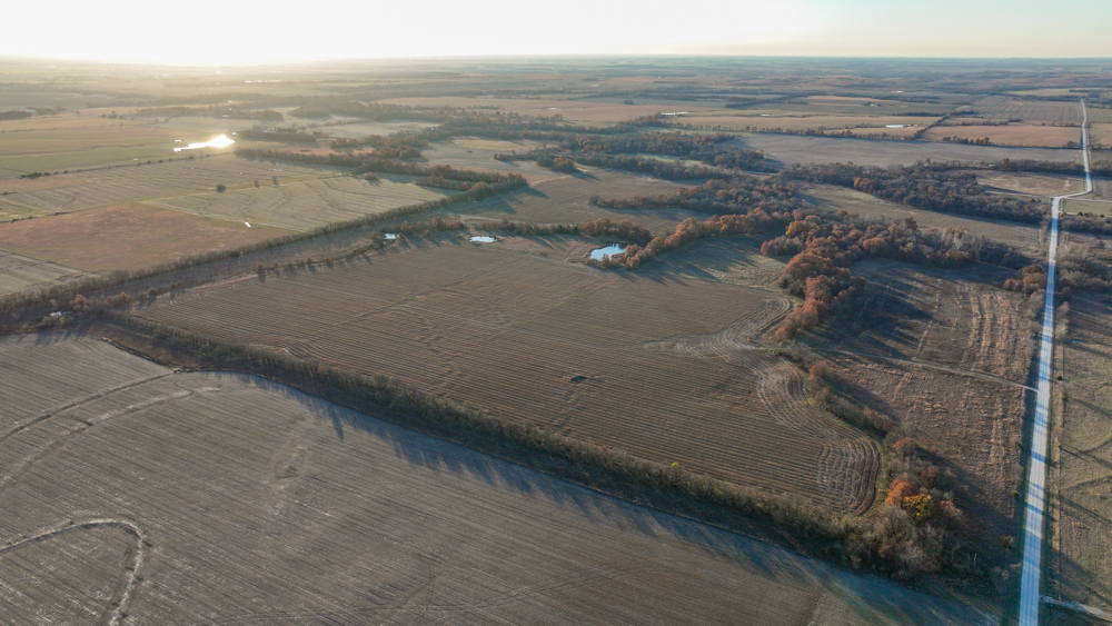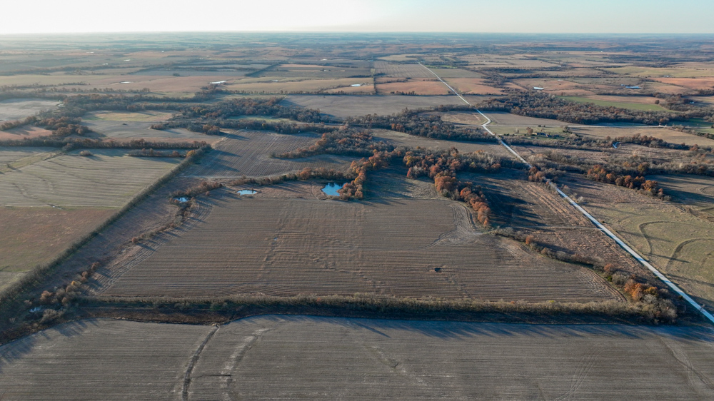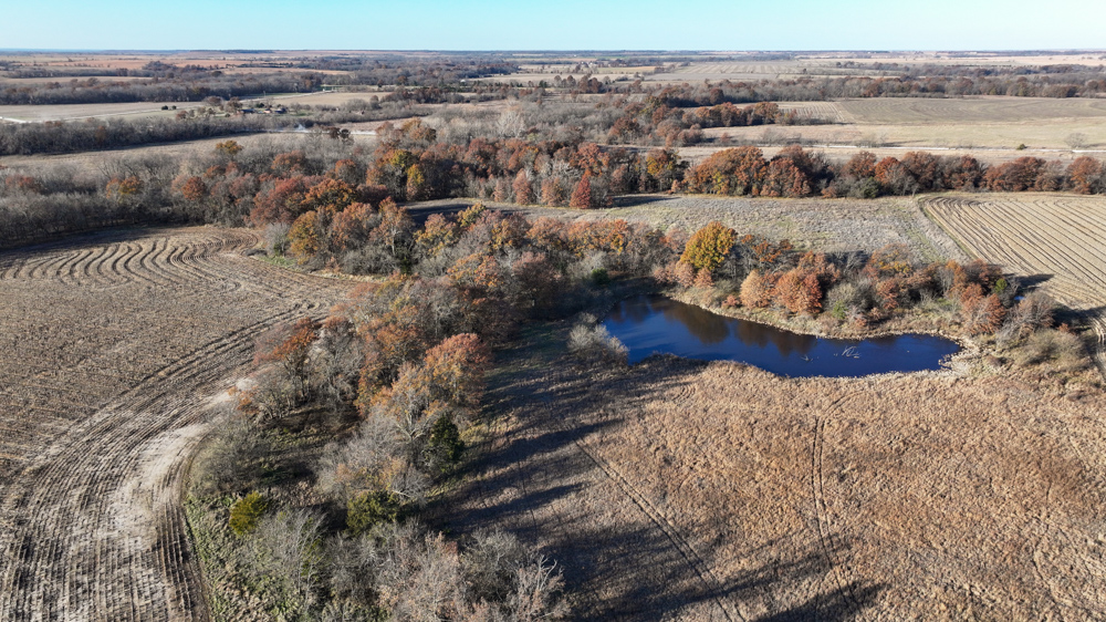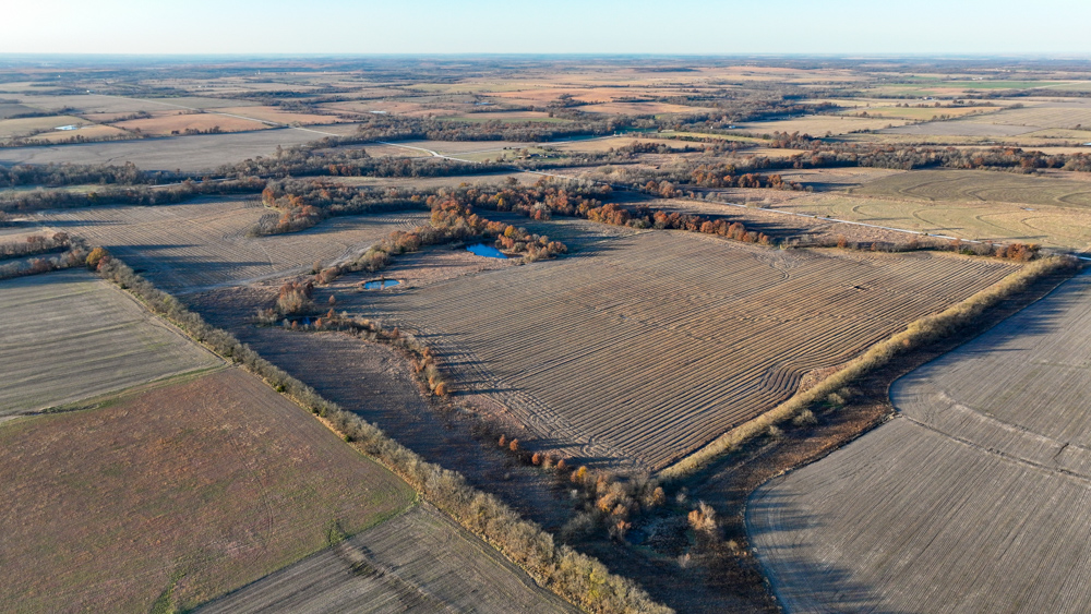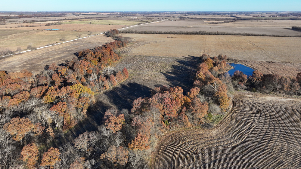 This 237 +/- acre property is located just south of Yates Center in Woodson County, Kansas, offering a rare combination of productive farmland, diverse wildlife habitat, and exceptional recreational opportunities. The property includes 117 +/- cropland acres currently in production, made up primarily of highly productive Class II and III Woodson and Kenoma silt loam soils. The cropland is well-maintained with terraces, waterways, and clean field edges, and is under a year-to-year oral cash rent lease, providing immediate income potential.