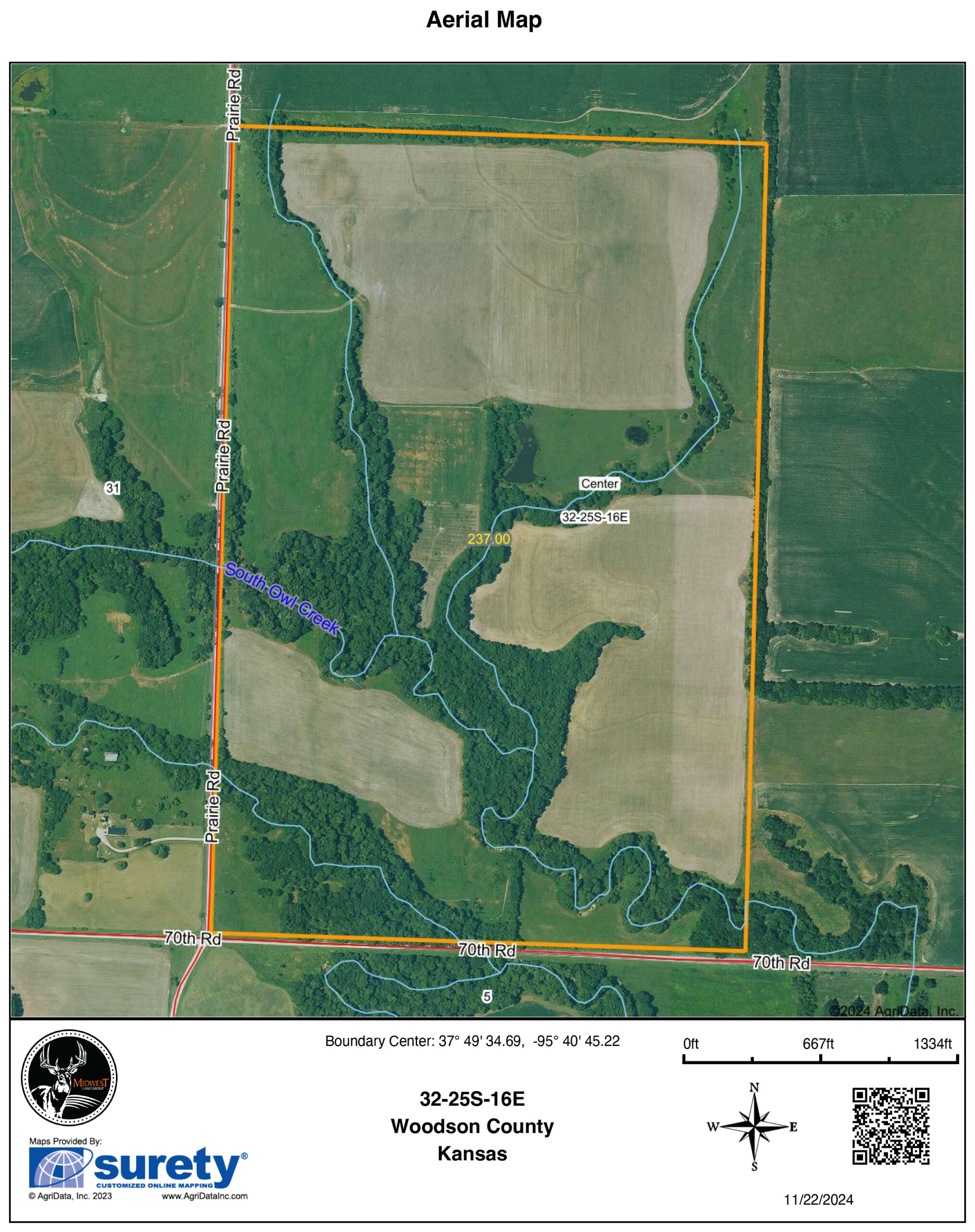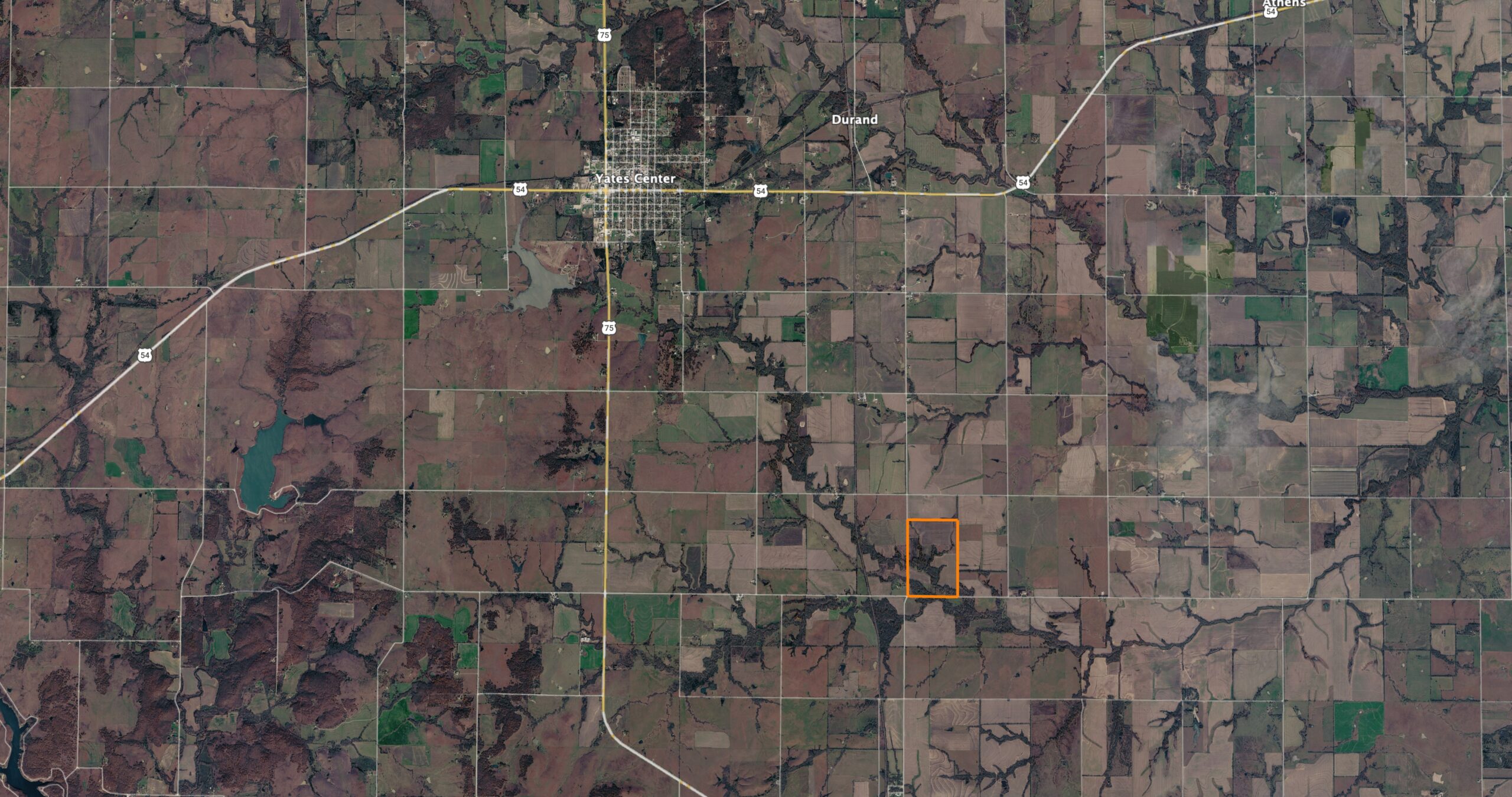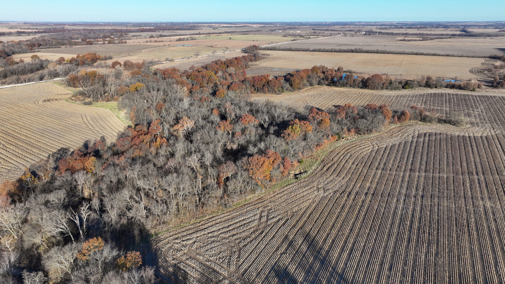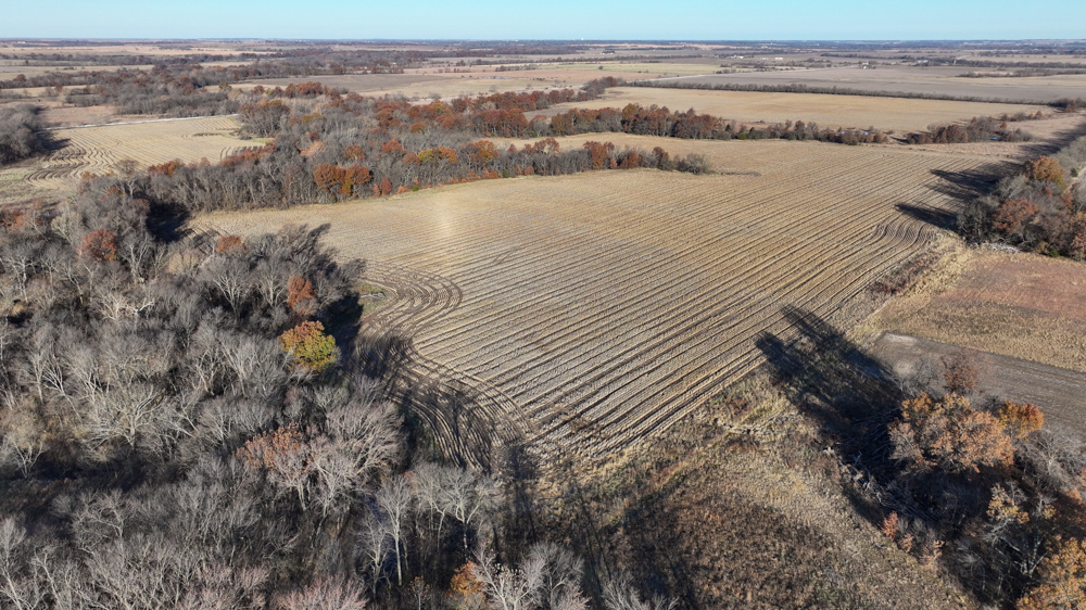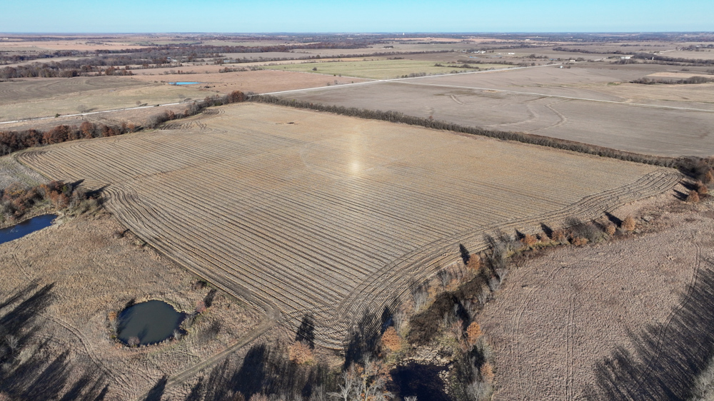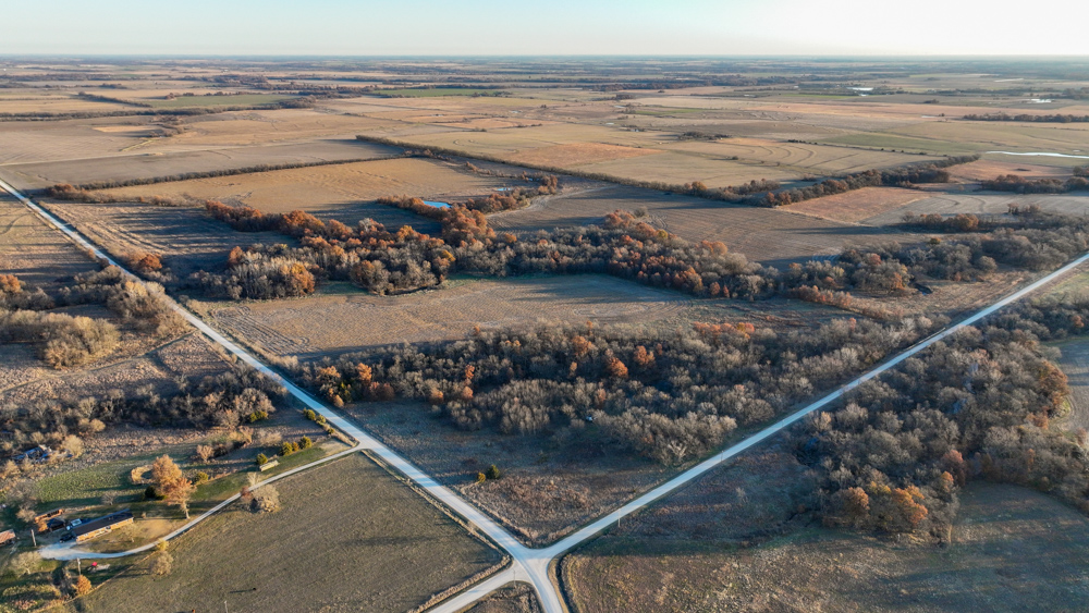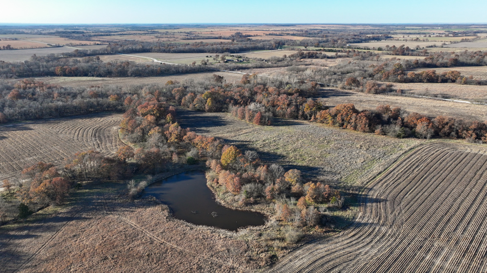 This 237 +/- acre property is located just south of Yates Center in Woodson County, Kansas, offering a rare combination of productive farmland, diverse wildlife habitat, and exceptional recreational opportunities. The property includes 117 +/- cropland acres currently in production, made up primarily of highly productive Class II and III Woodson and Kenoma silt loam soils. The cropland is well-maintained with terraces, waterways, and clean field edges, and is under a year-to-year oral cash rent lease, providing immediate income potential.
