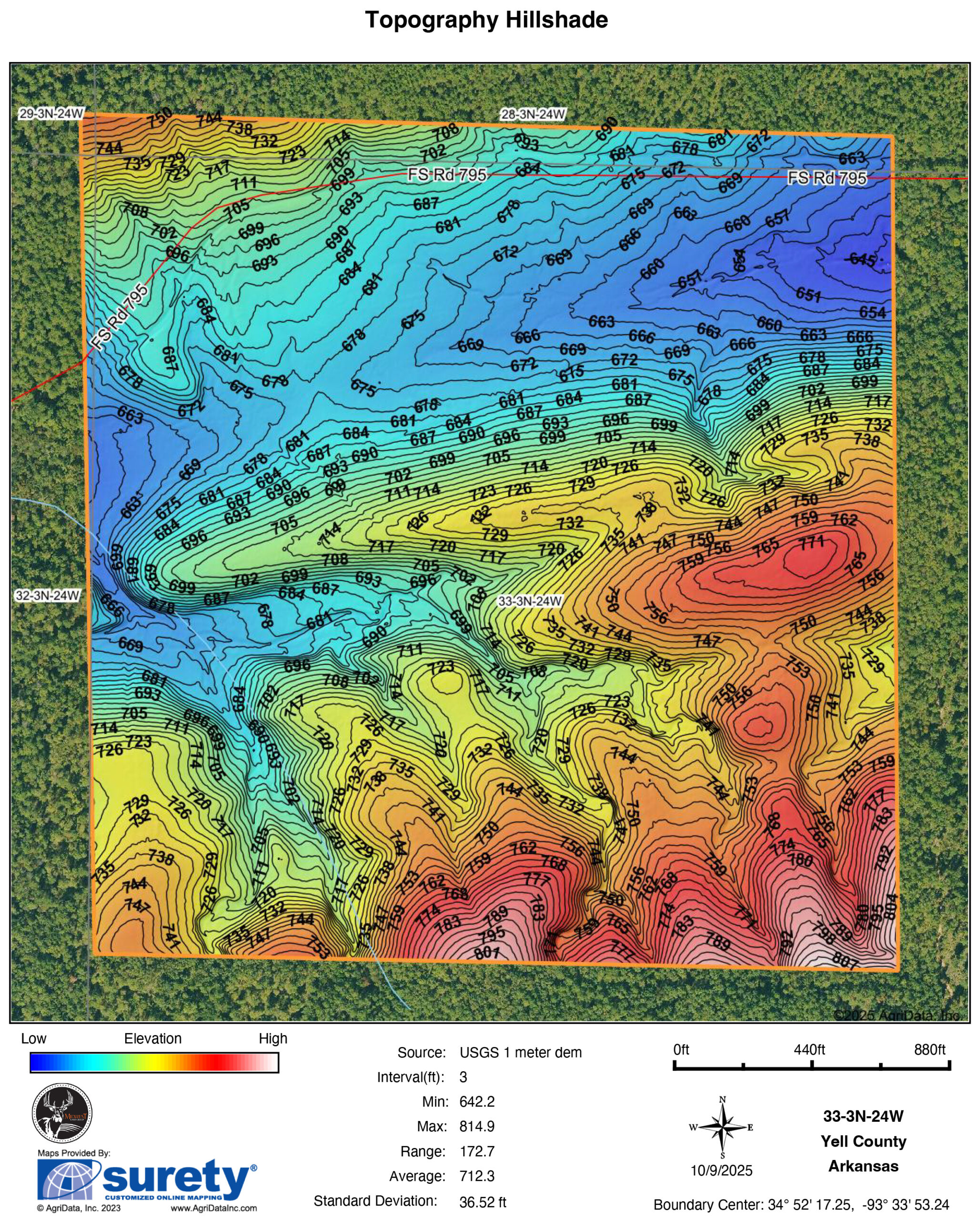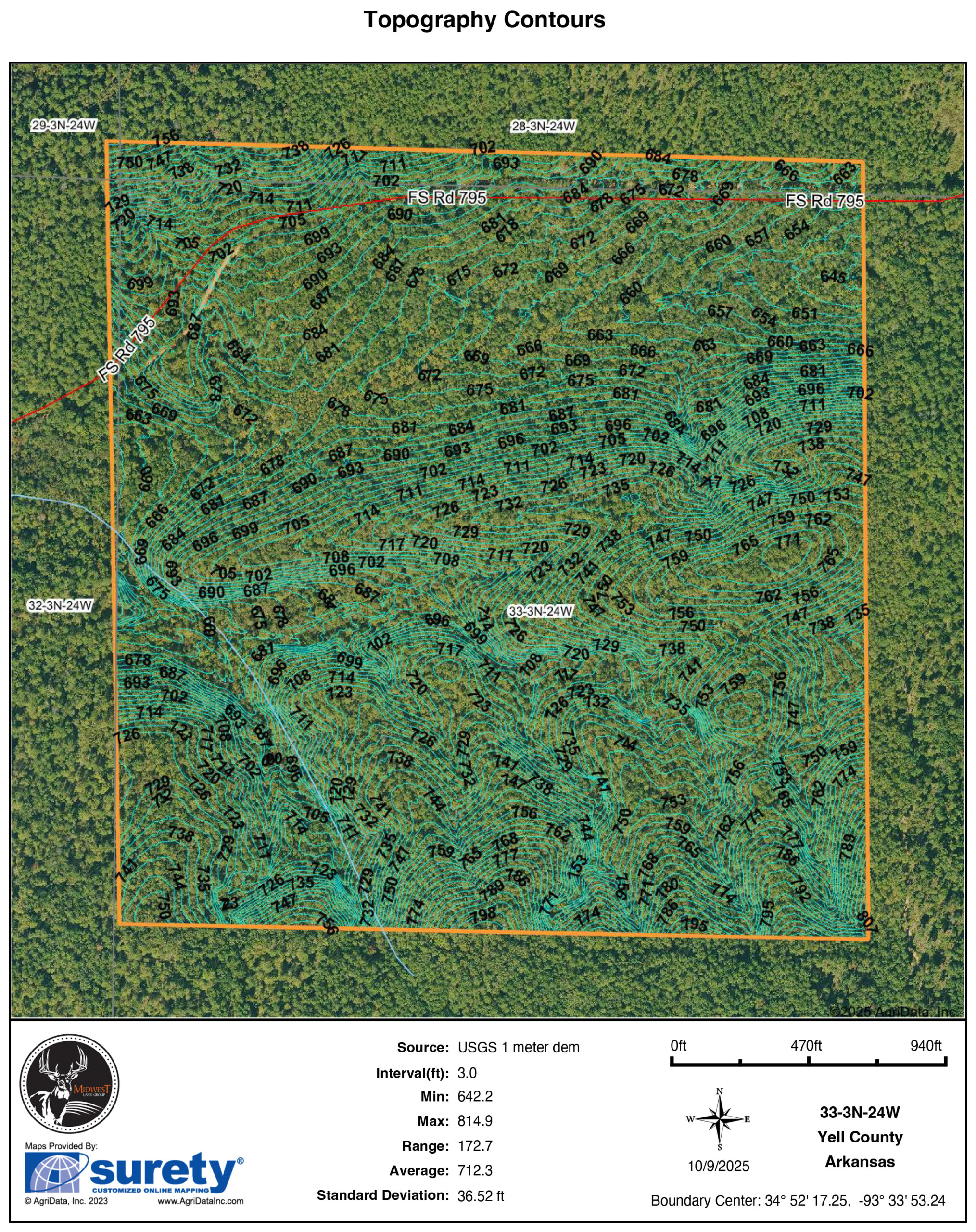 Forest Service Road 795, a year-round gravel road, accesses the property, and an ATV trail across one side of the property provides access for hunting and exploration. Deer and turkey are abundant in the area, and this property is no exception. Varying topography, along with a mixture of dense younger timber and mature acorn-producing oaks, make this property a hunter’s dream. This tract is ready for the management and planning that will make it flourish as one of the most unique hunting properties in the area.